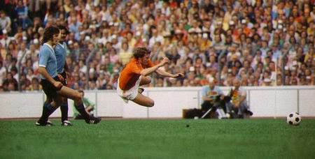 Pressing sistematico, raddoppi, occupazione totale degli spazi, sovrapposizioni e scambi di posizione continui: il Mondo e il Mondiale scoprono un calcio nuovo, detto “totale”. Lo pratica l’Olanda di Rinus Michels, forte di individualità straordinarie e di un gioco collettivo favoloso. A farne le spese, nell’esordio, è l’Uruguay, battuto 2-0 al termine di un incontro giocato di fatto a una sola porta. Gli olandesi sono dappertutto e i poveri sudamericani riescono raramente a passare la metàcampo. Non avevamo mai veduto ai Mondiali una differenza così marcata tra due formazioni. L’Uruguay riesce a limitare i danni, soltanto perché gli olandesi – questo è forse il loro unico piccolo neo – appaiono un po’ troppo narcisi e non riescono sempre a tradurre in concrete azioni da gol l’enorme mole di gioco prodotta.