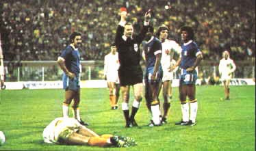 | L’espulsione di Luis Pereira dopo il fallo su Neeskens (http://easyweb.easynet.co.uk) |