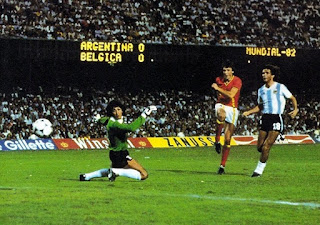 E’ il match inaugurale del gruppo 3. L’Argentina campione del mondo in carica, potenziata da elementi come Valdano, Diaz e soprattutto l’astro nascente Maradona, affronta il Belgio. La nazionale europea, grazie a una difesa molto attenta e alla trappola del fuorigioco, manda in tilt la superiore proprietà di palleggio dei sudamericani e conquista una vittoria insperata. L’Argentina paga una giornata storta di tanti dei suoi migliori elementi.