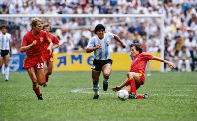 | Maradona, imprendibile per i difensori belgi (www.soccermond.com) |