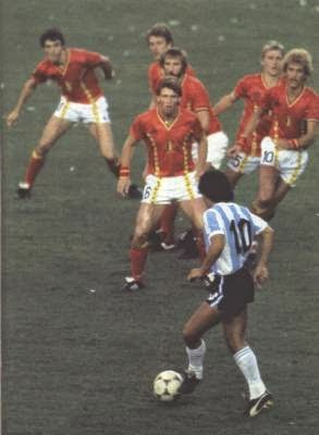 22′ Valdano serve per vie centrali Maradona, che accelera lasciando sul posto un paio di difensori, entra in area, ma manda a lato in diagonale.