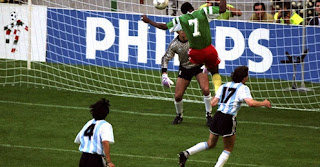 26′ lancio dal versante sinistro di Basualdo in area, la difesa del Camerun è scoperta, N’Kono esce e con i pugni riesce ad anticipare Maradona. L’Argentina non sembra riuscire a scuotersi dopo il gol subito: la squadra è statica e senza idee.