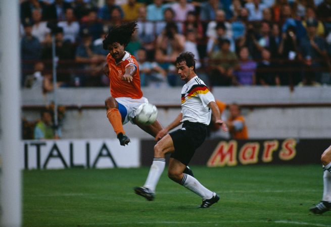 8′ da Gullit suggerimento a destra per un compagno, cross nell’area piccola, Winter brucia i difensori tedeschi, ma manda alto incredibilmente di testa. Partenza favorevole all’Olanda.