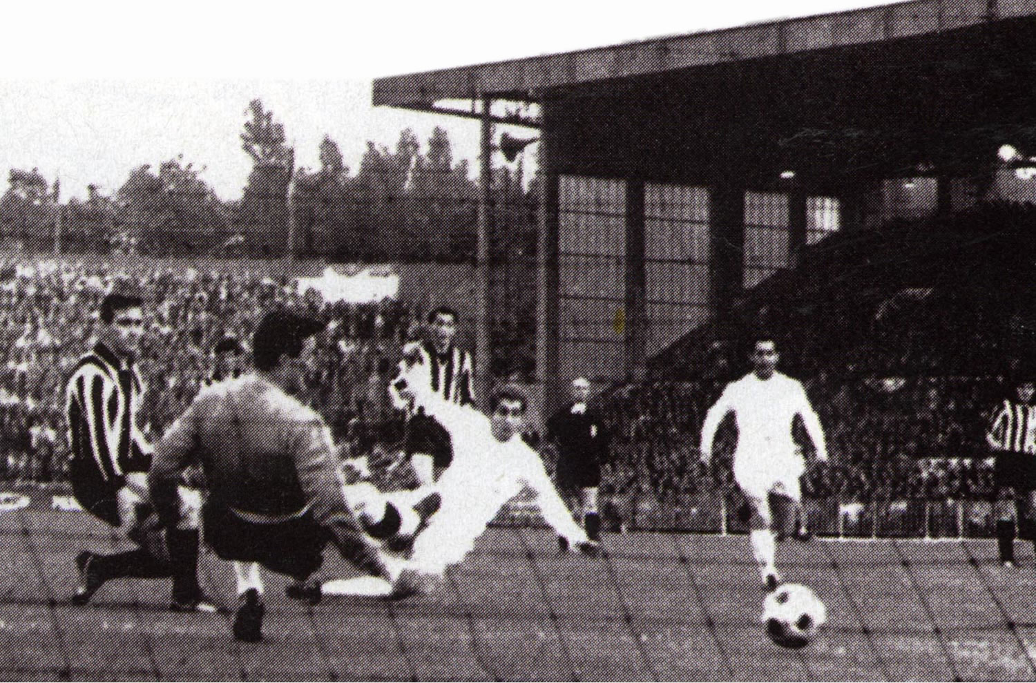 4′ Velazquez lancia Arancio sulla destra, l’attaccante del Real Madrid entra in area e serve Gento in mezzo, Becejac allontana all’ultimo. Inizio di secondo tempo più arrembante degli spagnoli, dopo una prima frazione soporifera.