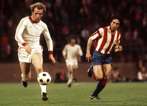 E’ l’unica finale nella storia della Coppa Campioni giocata due volte. La prima era finita 1-1 dopo i supplementari e, non essendo previsti i rigori, l’Uefa scelse di rigiocare l’incontro due giorni più tardi. Nella seconda occasione non c’è davvero partita: il Bayern Monaco annicchilisce 4-0 il malcapitato Atletico Madrid, al termine di una prestazione corale notevole. Rispetto all’altra grande squadra di club degli Anni ’70, l’Ajax, il Bayern è più classico nel modo di giocare, ma ugualmente devastante e ricco di individualità che hanno ben poco da invidiare a quelle olandesi. A rubare l’occhio in questa finale sono i soliti tre, Beckenbauer, Muller e Breitner, coadiuvati da un meraviglioso Hoeness.