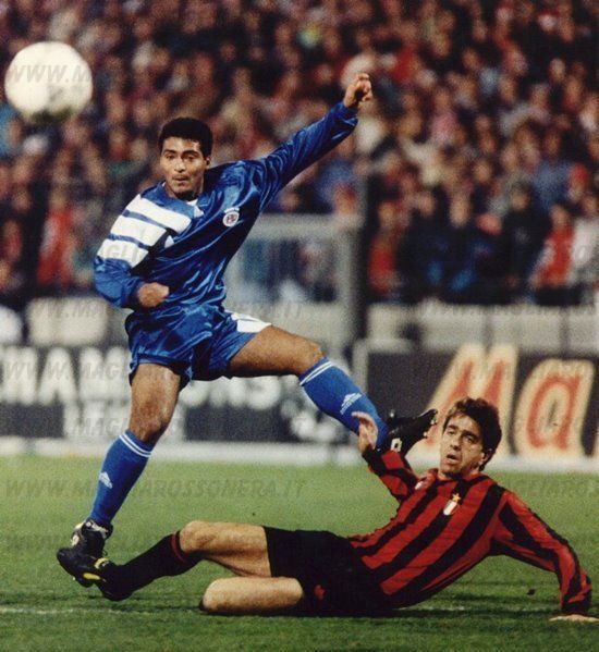 Romario contrastato da Costacurta [http://www.magliarossonera.it/]